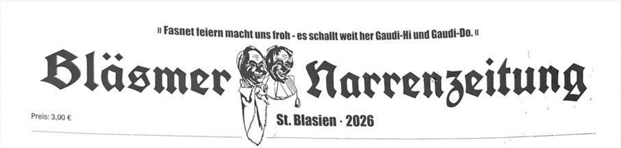 Die besten drei Witze wurden von der Redaktion prämiert und kamen in der aktuellen Narrenzeitung „Bläsmer Narrenzeitung“ St.Blasien 2026 zum Einsatz.